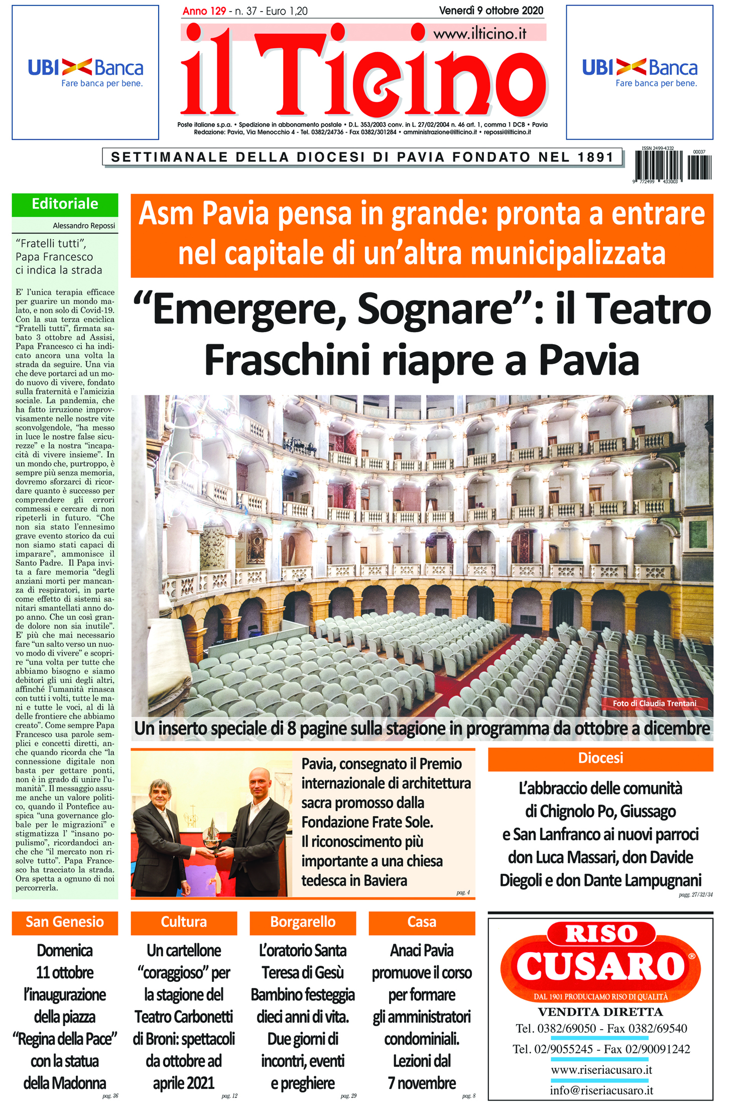 Attualità 9 Ottobre 2020 “il Ticino” nelle parrocchie della Diocesi di Pavia e nelle edicole di tutta la provincia