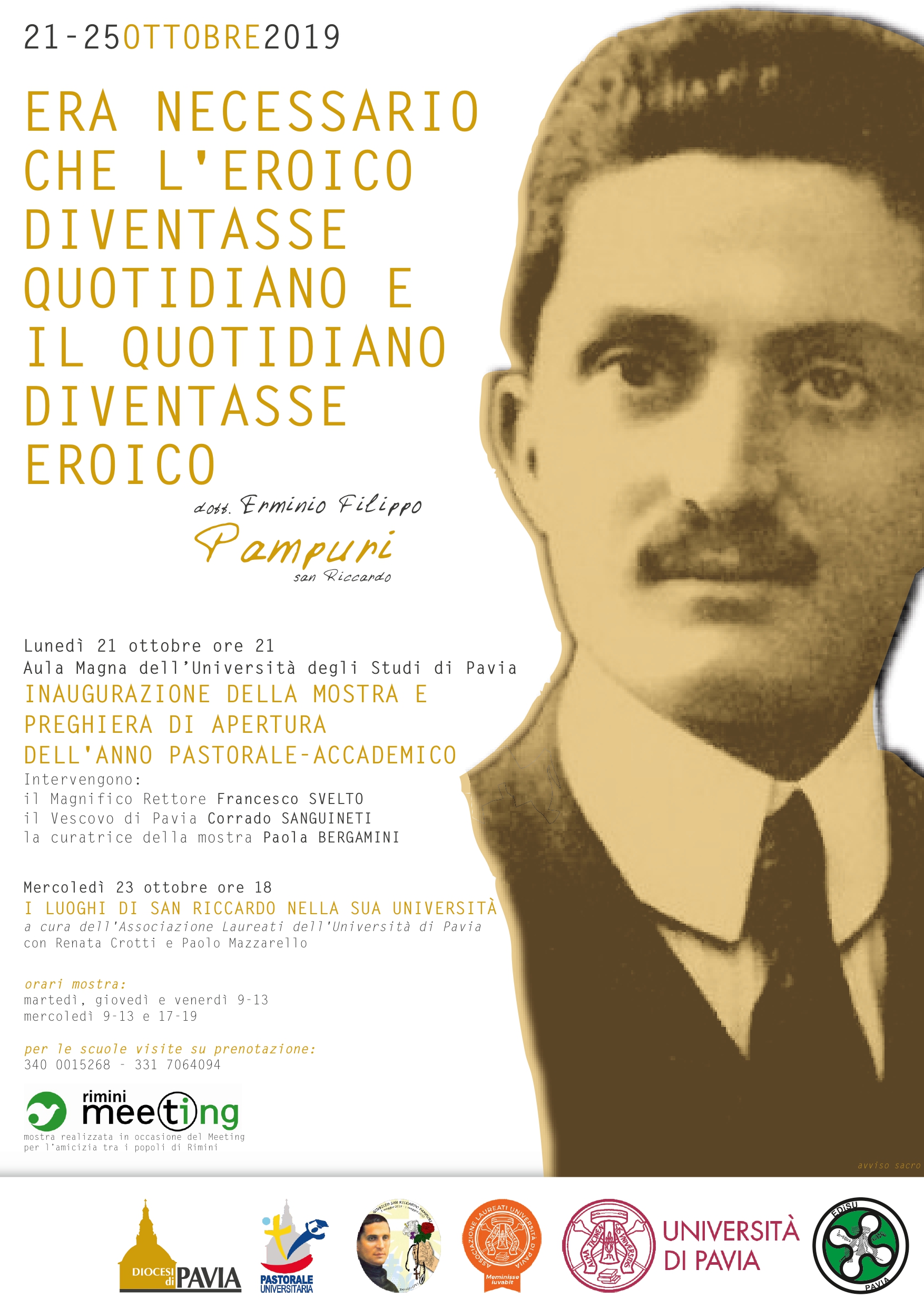 Un suggestivo percorso alla scoperta della vita e della figura di Filippo Erminio Pampuri. Questo è il cuore della mostra “San Riccardo Pampuri. Era necessario che l’eroico diventasse quotidiano e il quotidiano diventasse eroico”, che sarà inaugurata lunedì 21 ottobre durante l’apertura dell’Anno Pastorale Accademico (aperta a tutti i docenti e gli studenti della città) alle ore 21 presso l’Aula Magna dell’Università degli Studi di Pavia (in Piazza Leonardo Da Vinci, 12).