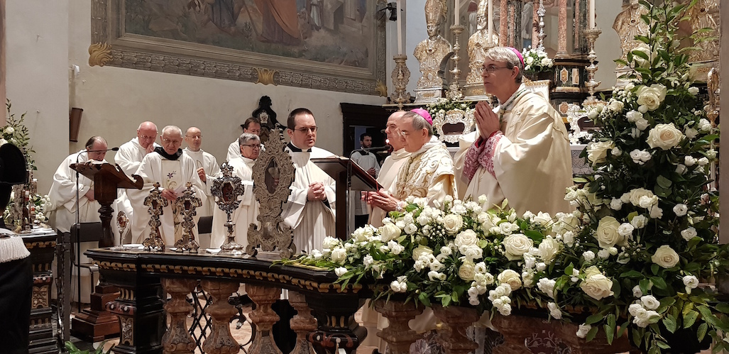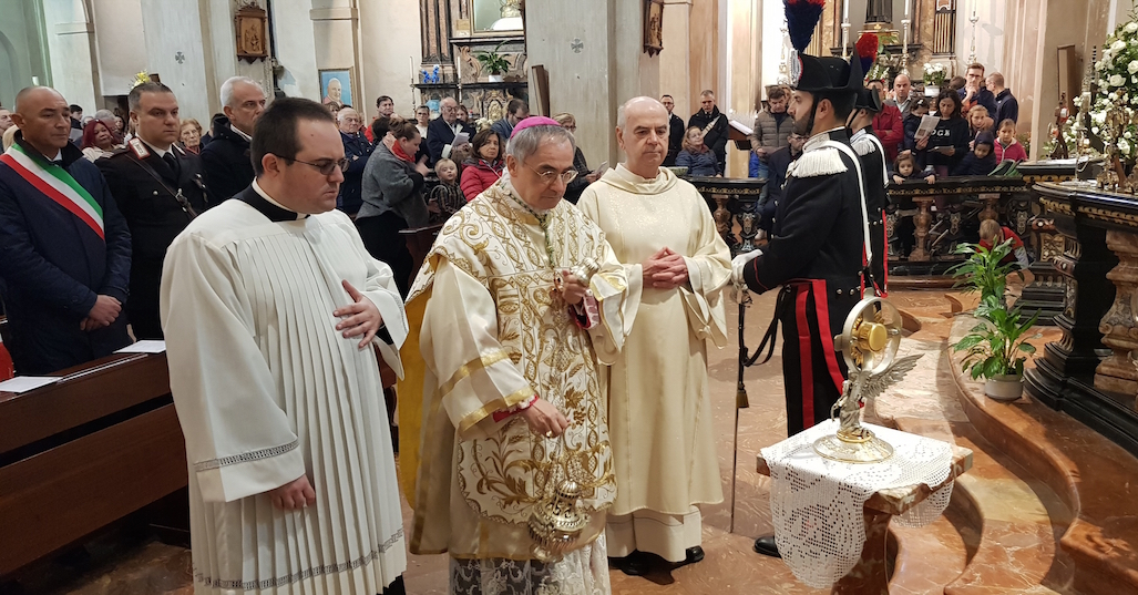 Il ricordo del giorno della canonizzazione a Roma, nel 1989, è riaffiorato anche nelle parole di monsignor Lanzani: “Accompagnavo l’indimenticato Cardinale Virgilio Noè e ricordo che proprio lui, avvicinandosi a Papa Giovanni Paolo, ebbe a dire ‘oggi anche la mia città è in festa’ e il Pontefice rispose ‘sì, San Riccardo è una figura attuale, amabile e bella da imitare’; sono parole vere che rieccheggiano oggi anche qui e ora. Penso che la via della incrollabile fedeltà al Signore di Riccardo sia il segreto della sua indubbia attualità e ritengo che sia possibile ancora oggi seguire le sue orme grazie a tre grandi passi vivibili. Il primo è riconoscerci cristiani: oggi c’è confusione e disgregazione nella società ,caratterizzata dalla presenza di mille modelli diversi. Dobbiamo riscoprire la nostra immagine e la nostra identità cristiana, aiutati da San Riccardo, che da ragazzo era sempre impegnato a confermare il suo essere cristiano con una fede coerente. Il secondo passo è quello di immedesimarci nel Mistero di Dio: Riccardo diede vita ad una immedesimazione reale e continua e se queste chiese locali potessero parlare quanto direbbero dei suoi legami di vero amore con Gesù! San Riccardo non aveva fede intimistica, con la sua professione donava la spiritualità che aveva dentro di sé e quando parlava con la gente si capiva che la sua anima era piena del Signore. Infine, dobbiamo imparare da Riccardo a donarci: gli ultimi tre anni della sua vita furono proprio caratterizzati da questa volontà. Il dono di sé stesso e del soprannaturale che era in lui avvenivano quotidianamente con umiltà e mitezza, che raggiunsero la massima espressione attraverso l’ardore e la dedizione esemplare che Riccardo aveva verso gli ammalati, sull’esempio di San Giovanni di Dio, fondatore dell’ordine dei Fatebenefratelli. I Santi – ha concluso Monsignor Lanzani – sono un aiuto perché per merito loro e per la loro intercessione possiamo avere grazie per la nostra vita”.