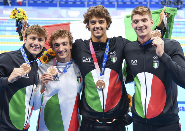Alle Olimpiadi di Tokyo 2020 il 19enne pavese Federico Burdisso è medaglia di bronzo nella finale dei 200 delfino (nella foto al momento della premiazione, ndr). L’oro è stato vinto dall’ungherese Milak, l’argento dal giapponese Honda. Burdisso ha chiuso la sua gara in 1’55”40, a 3’20” da Milak. “Negli ultimi tempi ho avvertito molto stress: questa gara non volevo neanche farla. Ma ora sono molto contento”, le prime parole di Burdisso. “Devo ancora realizzare bene, è stata un’Olimpiade po’ strana, faccio un po’ fatica ad accorgermi di quello che mi accade attorno. Il secondo posto era alla mia portata, comunque mi accontento del terzo posto”. (ANSA)