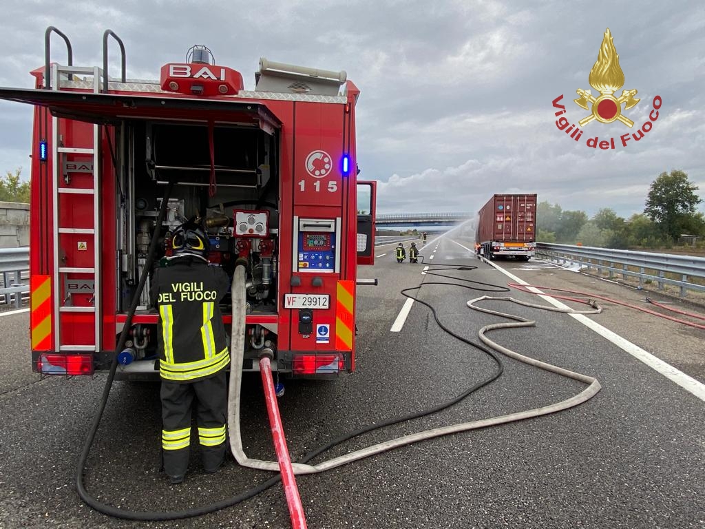 In fiamme un tir sull’A7 vicino a Casei Gerola (Pavia)