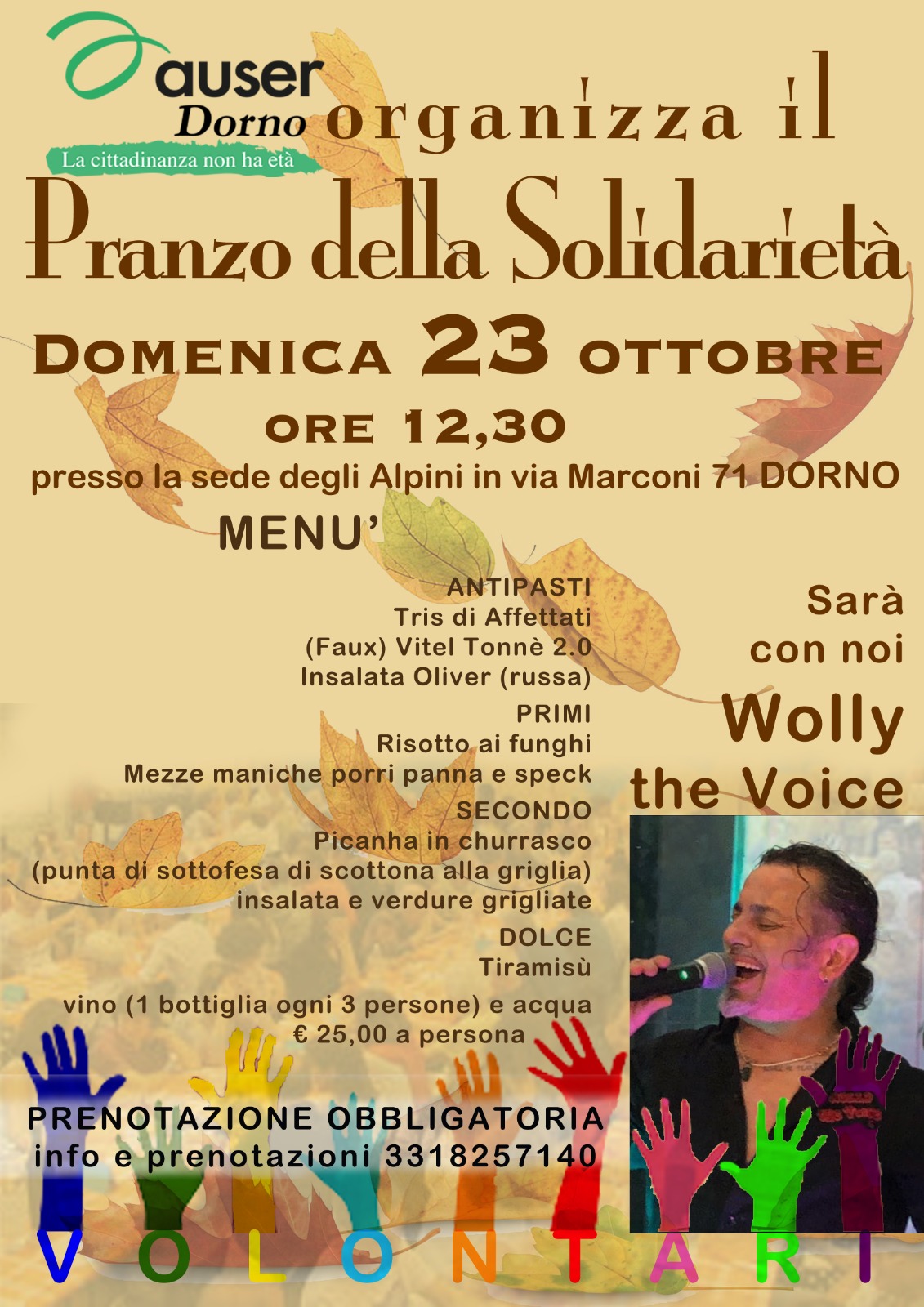 Dorno, domenica 23 ottobre il “Pranzo della Solidarietà”