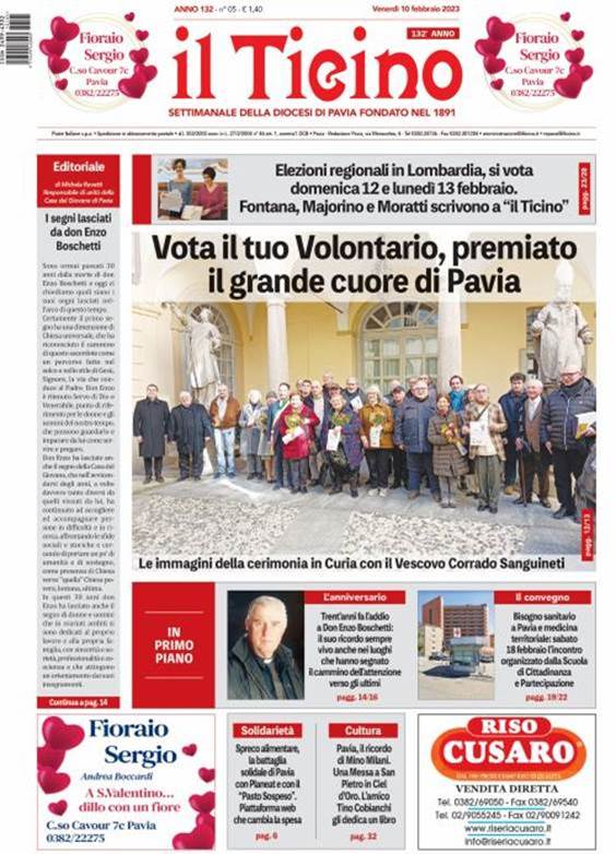 Attualità 11 Febbraio 2023 “il Ticino” nelle parrocchie della Diocesi di Pavia e nelle edicole di tutta la provincia