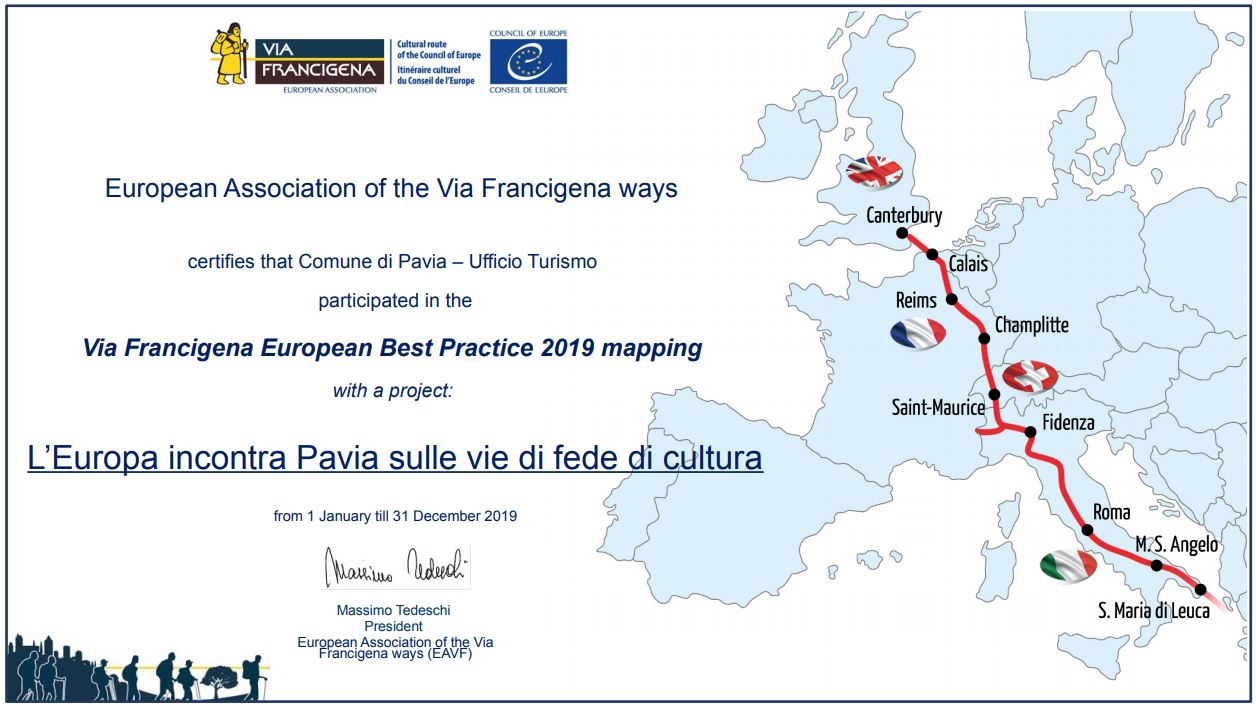 Pavia, arrivano le mattonelle “segnaletiche” della Via Francigena