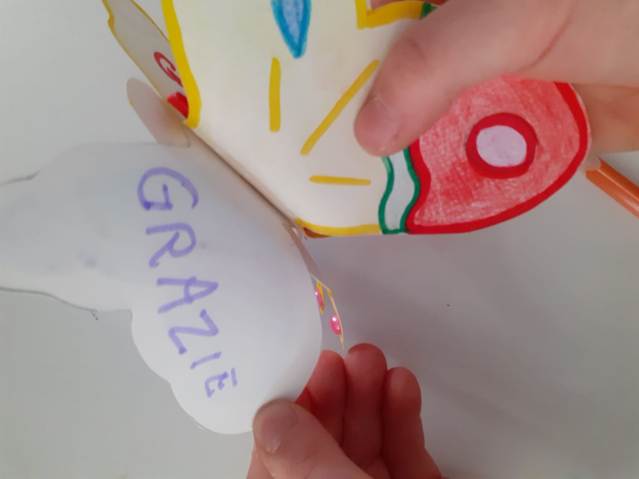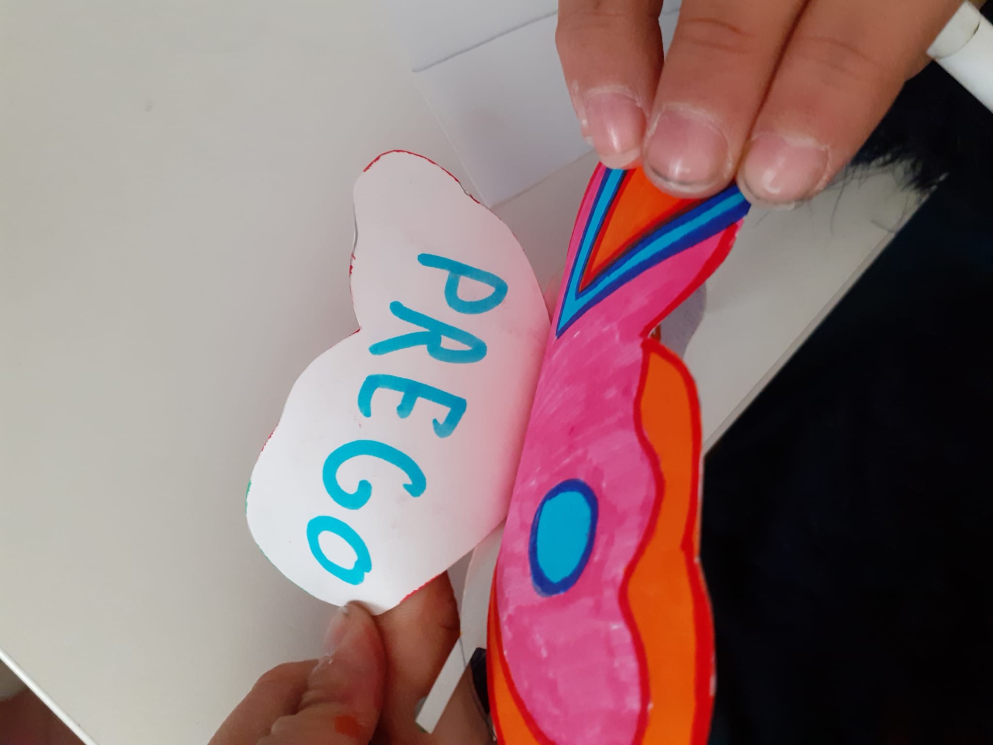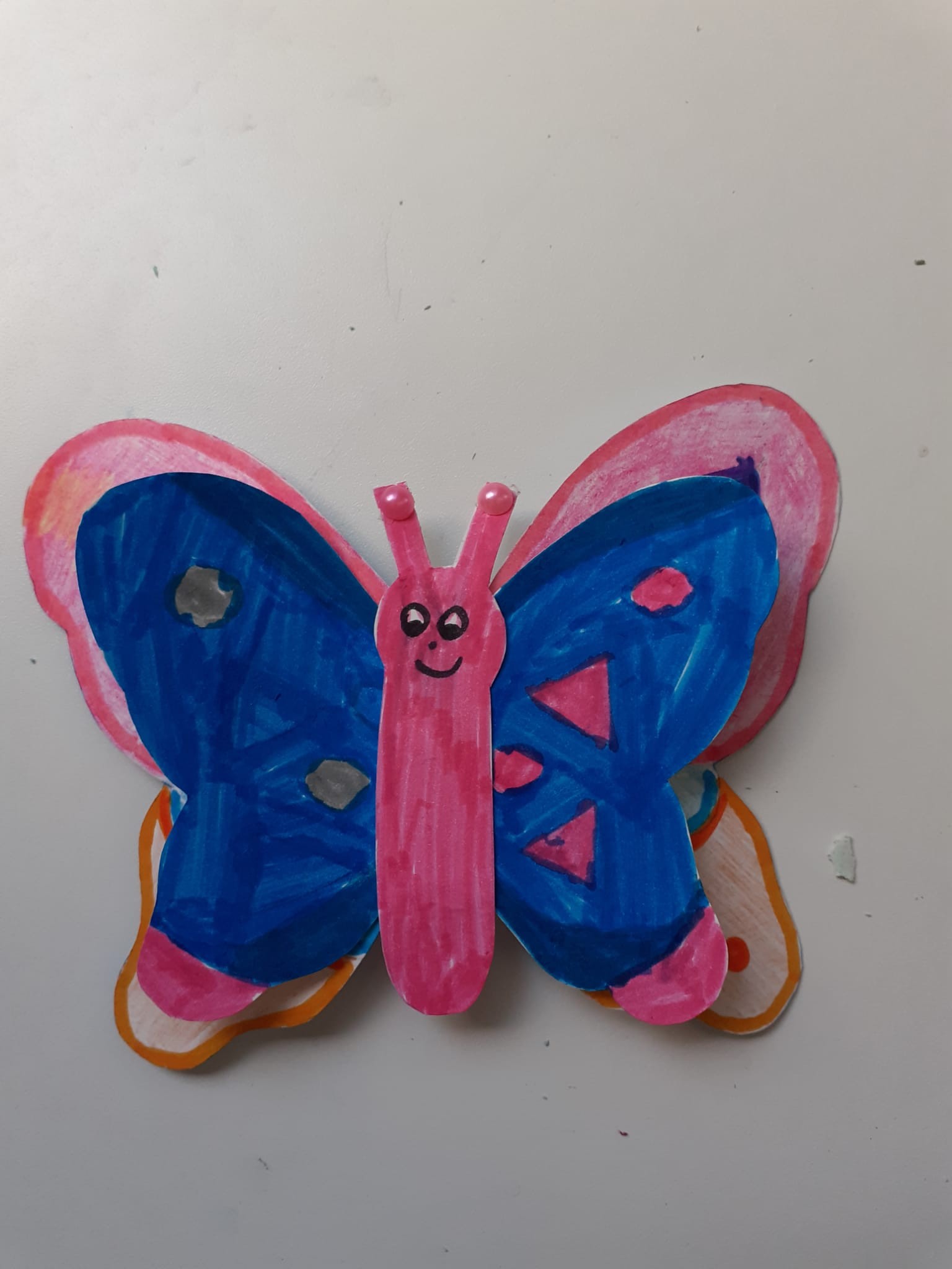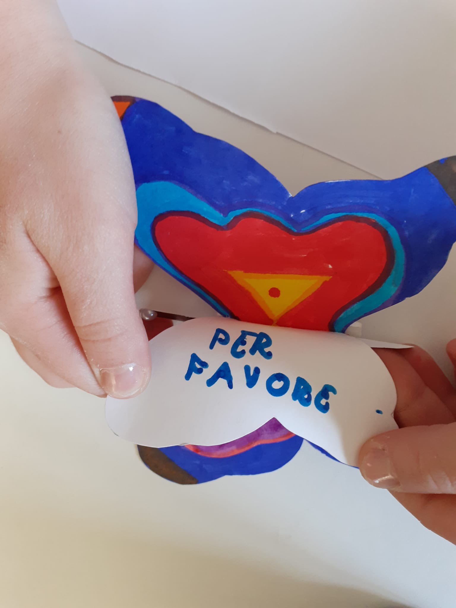 8)Valentina ci ha detto di incollare la nostra farfalla su quella che ci hanno dato dagli ospiti del dormitorio di Caritas. A me hanno dato quella di guillermo che viene dalla Spagna e c’era scritto perdon amigo e io gli ho scritto ti posso aiutare … perché aiutare un amico è molto bello gentile e importante .