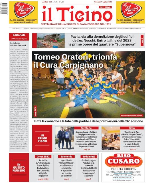 Completano questo numero de “il Ticino” altre notizie dalle comunità parrocchiali della Diocesi di Pavia, l’attualità e gli appuntamenti, le notizie dal territorio, le rubriche, la pagina dedicata a Papa Francesco, lo sport e i servizi utili.