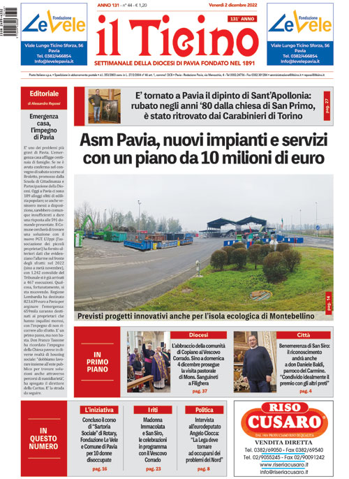 Completano questo numero de “il Ticino” altre notizie dalle comunità parrocchiali della Diocesi di Pavia, l’attualità e gli appuntamenti, le notizie dal territorio, le rubriche, la pagina dedicata a Papa Francesco, lo sport e i servizi utili.