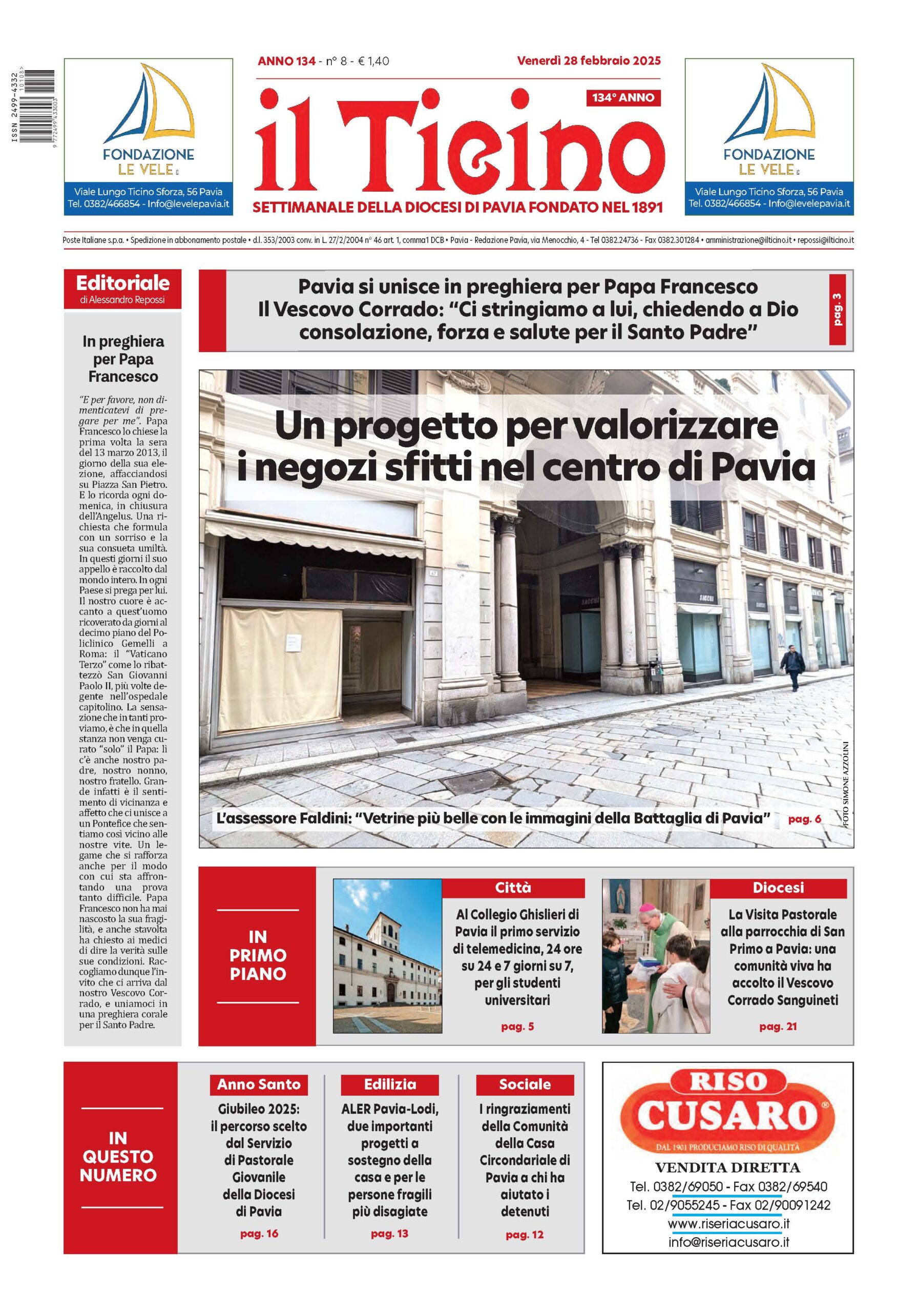 Completano questo numero de “il Ticino” altre notizie dalle comunità parrocchiali della Diocesi di Pavia, l’attualità e gli appuntamenti, le informazioni dal territorio, le rubriche, la pagina dedicata a Papa Francesco, lo sport e i servizi utili.