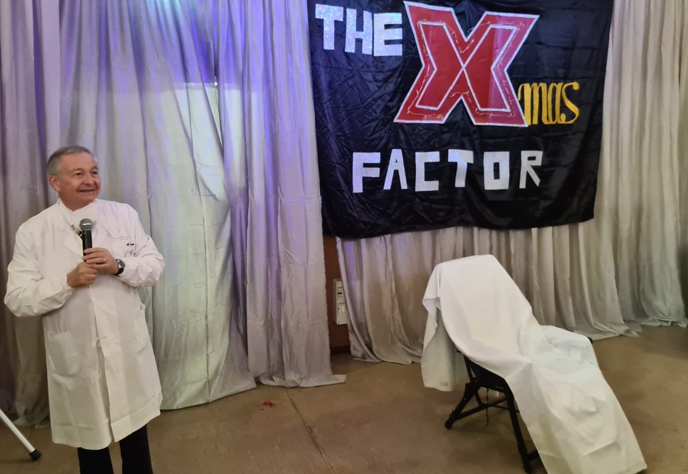 E’ stato, come sempre, uno degli eventi più belli vissuti a Pavia nei giorni che precedono le festività di fine anno. La festa di Natale alla Pediatria del Policlinico San Matteo è stata un momento di gioia condivisa. L’appuntamento viene organizzato ogni anno dal personale della Clinica Pediatrica grazie a un comitato volontario di medici e infermieri. Nell’Aula Burgio si è tenuto stavolta l’appuntamento dal titolo “Xmas Factor, dilettanti allo sbaraglio”. “Negli ultimi anni abbiamo realizzato dei veri e propri spettacoli da 45 minuti con storie inventate da noi, con parti recitate, cantate e ballate dal vivo – ha sottolineato il prof. Gian Luigi Marseglia, direttore della Pediatria (nella foto il suo intervento durante la festa) -. Il personale di tutta la Clinica Pediatrica (Pediatria, Oncoematologia, Chirurgia Pediatrica) partecipa volontariamente non solo recitando, cantando e ballando, ma anche preparando i costumi e le scenografie, oltre ad occuparsi della parte tecnica. Quest’anno il tema della festa ha fatto il verso ai talent show. Per la Pediatria del San Matteo sono tempi bui, moltissimi bambini affollano il pronto soccorso e i reparti sono pieni di pazienti che trascorreranno il Natale da ricoverati con il rischio di non ricevere regali. Ma grazie alla nostra festa abbiamo donato loro una mattinata felice”.