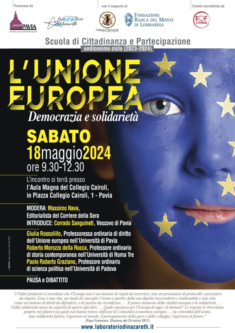 L’articolo “L’Unione europea. Democrazia e solidarietà”: sabato 18 maggio l’incontro al Collegio Cairoli proviene da Diocesi di Pavia.