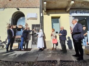 Spiega Paolo Bresciani: “L’idea di valorizzare i luoghi di Santa Benedetta a Pavia è stata di Renata Crotti, docente della nostra università e l’abbiamo concretizzata grazie alle ricerche storiche di Luigi Bardone e madre Maria Germana che ha collaborato alla stesura della positio per la causa di canonizzazione di Santa Benedetta. Oltre alla targa che scopriremo oggi, e ringraziamo la famiglia Calisti per aver concesso lo spazio, ne verrà installata un’altra in via Sant’Ennodio. In quello stabile venne aperta, nel 1827, la prima struttura pensata per l’accoglienza. L’anno successivo, siamo nel 1828, Benedetta entra nella casa di Via San Giovanni in Borgo, attuale sede dell’ente. Un altro luogo che ricorda la presenza di Benedetta è via Fratelli Cremona, l’attuale scuola Leonardo da Vinci, dove la Santa aprì una comunità di accoglienza nel 1851. C’è già una targa, posizionata dal dirigente scolastico professoressa Livianna Speciale nel 2022. Infine, sempre dal 2022, abbiamo in Duomo una cappella dedicata alla Santa. Santa Benedetta è anche ricordata al Famedio del Cimitero monumentale di Pavia”.