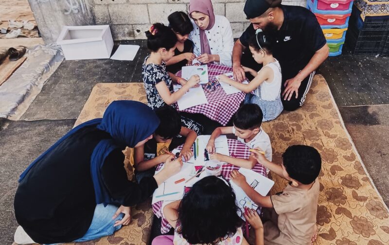 irlandese, Feile Butler, è la raccolta di disegni che bambini gazawi hanno prodotto negli ultimi due anni, in uno spazio chiamato “Tenda degli Artisti” in cui i bambini si ritrovano