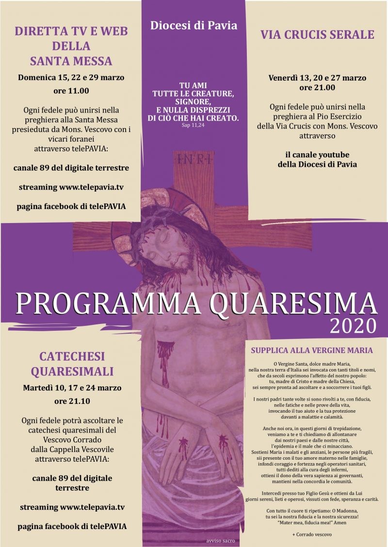 Catechesi di Quaresima del Vescovo Corrado Verranno trasmesse dall’emittente televisiva locale Telepavia anche le Catechesi Quaresimali condotte dal Vescovo di Pavia, Mons. Corrado Sanguineti. Le Catechesi, dal titolo “In cerca d’autore” si svolgono nella Cappella Vescovile e verranno trasmesse martedì 10 marzo, martedì 17 marzo e martedì 24 marzo alle ore 21. TelePAVIA è visibile…