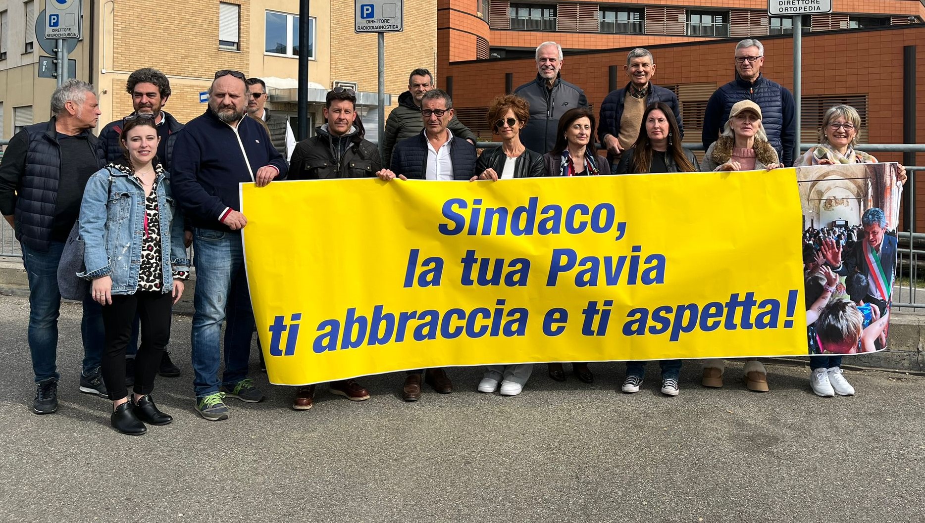 Attualità 15 Aprile 2023 Striscione di vicinanza al sindaco di Pavia, ricoverato al Policlinico San Matteo