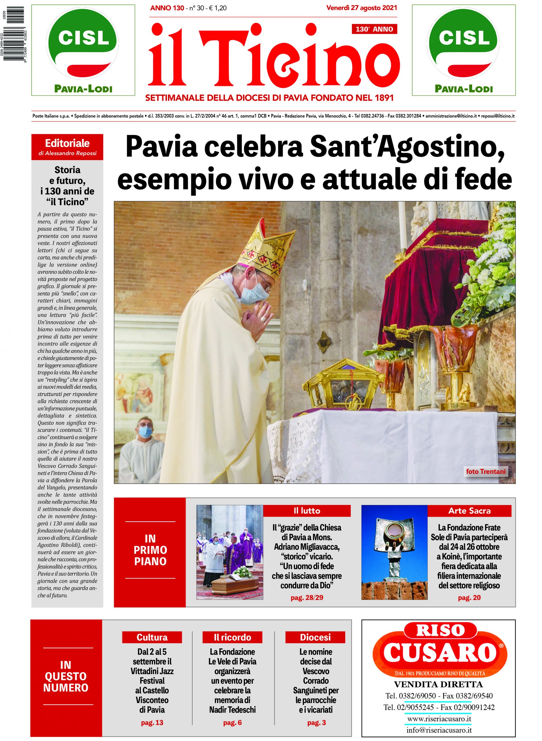 News 27 Agosto 2021 “il Ticino” nelle parrocchie della Diocesi di Pavia e nelle edicole di tutta la provincia