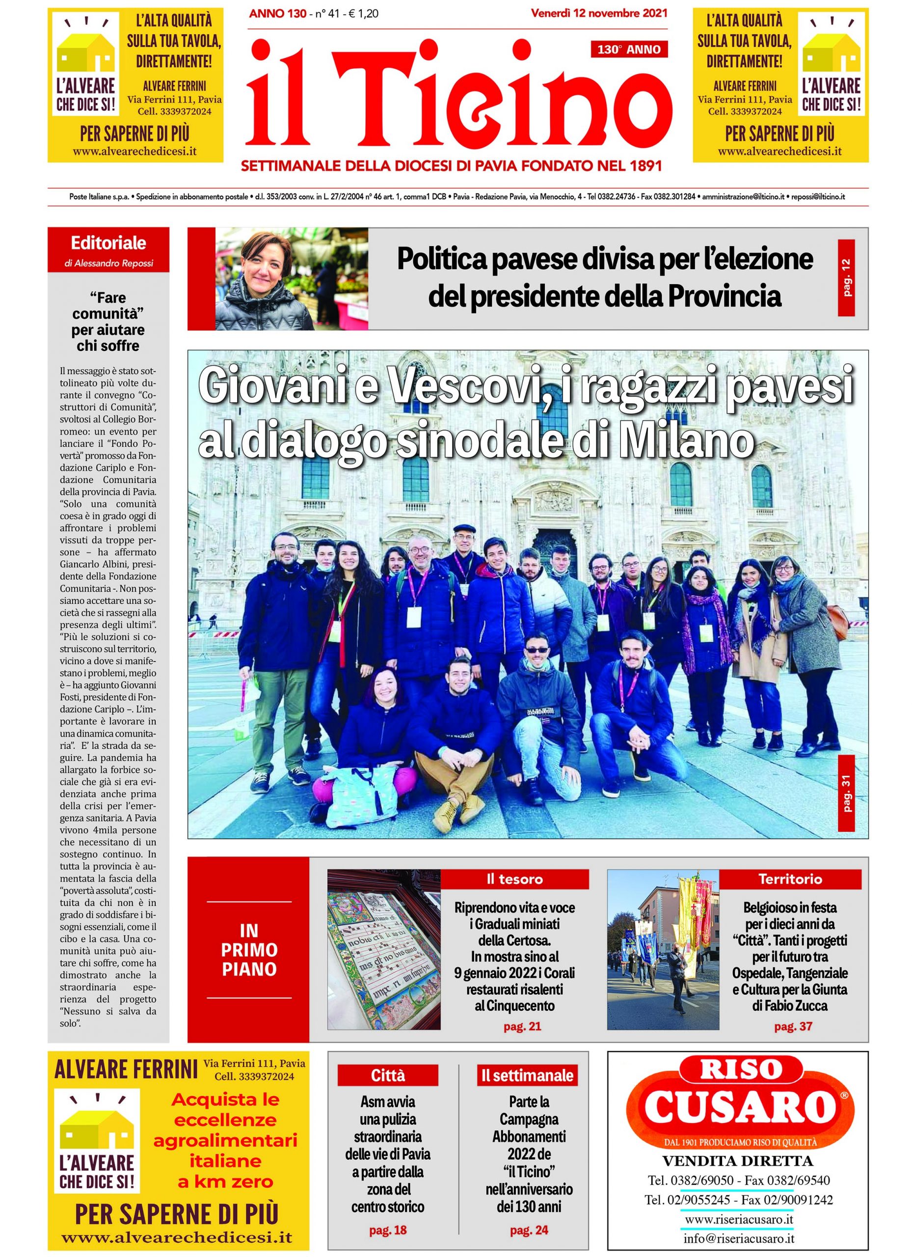 Attualità 13 Novembre 2021 “il Ticino” nelle parrocchie della Diocesi di Pavia e nelle edicole di tutta la provincia